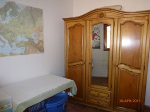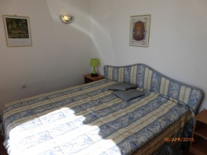 Das blaue Zimmer ganz am Ende des Wohntraktes hat einen eigenen Zugang nach draußen zum Carport, der von Felsen umgeben ist.